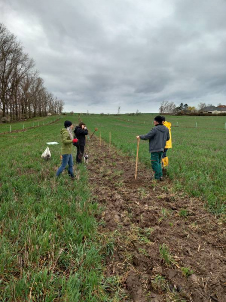 An zwei Terminen waren wir mit ca. 60 Helfer:innen in der Nähe von Taucha auf der Fläche eines Schäfers, der uns um Unterstützung für seine Pflanzung gebeten hatte. Auf 15 Hektar Land entsteht eine große Bio-Obstbaum-Wiese mit 1000 Bäume.