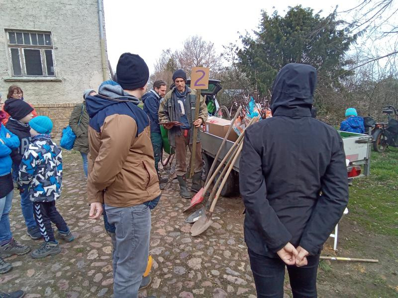 An zwei Terminen waren wir mit ca. 60 Helfer:innen in der Nähe von Taucha auf der Fläche eines Schäfers, der uns um Unterstützung für seine Pflanzung gebeten hatte. Auf 15 Hektar Land entsteht eine große Bio-Obstbaum-Wiese mit 1000 Bäume.