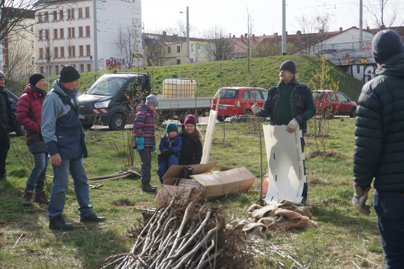 02.04.2022 – Auf einer Brachfläche an der Antonienbrücke im Leipziger Stadtteil Plagwitz haben wir 140 Vogelkirschen und 300 kleine Eichen gepflanzt sowie Eicheln und Kastanien gesteckt. Die Aktion wurde vom Amt für Stadtgrün und Gewässer der Stadt Leipzig durchgeführt, welche sich auch um die Fläche kümmert und dafür sorgt, dass die Bäume in trockenen Zeiten gegossen werden. Wir haben mit zahlreichen Helfern unterstützt.
