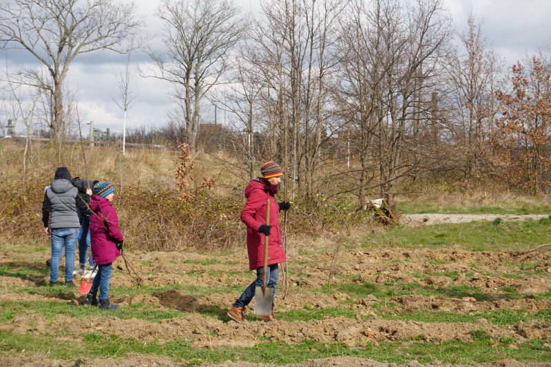 02.04.2022 – Auf einer Brachfläche an der Antonienbrücke im Leipziger Stadtteil Plagwitz haben wir 140 Vogelkirschen und 300 kleine Eichen gepflanzt sowie Eicheln und Kastanien gesteckt. Die Aktion wurde vom Amt für Stadtgrün und Gewässer der Stadt Leipzig durchgeführt, welche sich auch um die Fläche kümmert und dafür sorgt, dass die Bäume in trockenen Zeiten gegossen werden. Wir haben mit zahlreichen Helfern unterstützt.