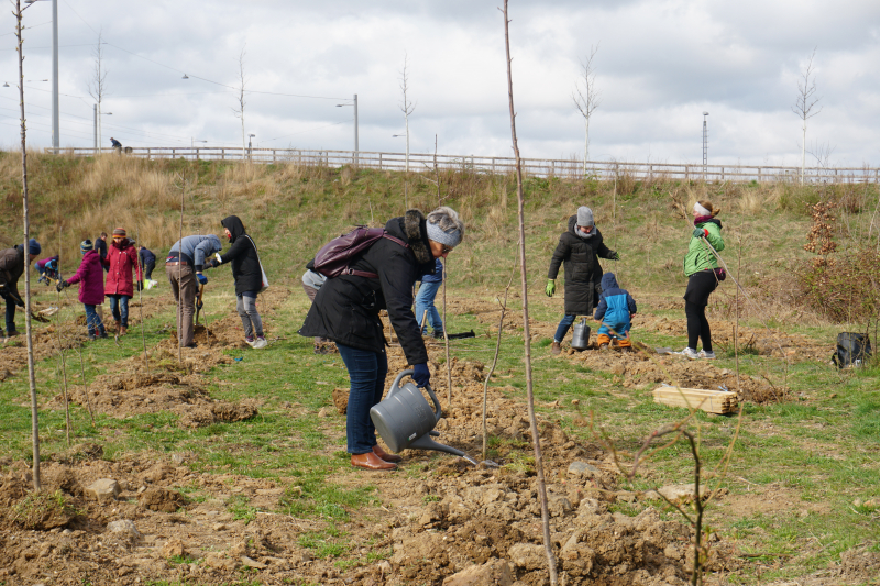 02.04.2022 – Auf einer Brachfläche an der Antonienbrücke im Leipziger Stadtteil Plagwitz haben wir 140 Vogelkirschen und 300 kleine Eichen gepflanzt sowie Eicheln und Kastanien gesteckt. Die Aktion wurde vom Amt für Stadtgrün und Gewässer der Stadt Leipzig durchgeführt, welche sich auch um die Fläche kümmert und dafür sorgt, dass die Bäume in trockenen Zeiten gegossen werden. Wir haben mit zahlreichen Helfern unterstützt.