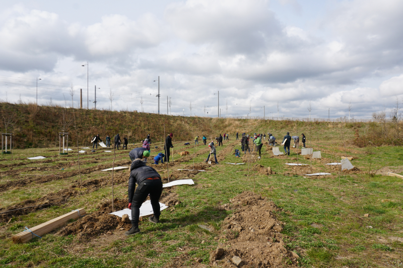 02.04.2022 – Auf einer Brachfläche an der Antonienbrücke im Leipziger Stadtteil Plagwitz haben wir 140 Vogelkirschen und 300 kleine Eichen gepflanzt sowie Eicheln und Kastanien gesteckt. Die Aktion wurde vom Amt für Stadtgrün und Gewässer der Stadt Leipzig durchgeführt, welche sich auch um die Fläche kümmert und dafür sorgt, dass die Bäume in trockenen Zeiten gegossen werden. Wir haben mit zahlreichen Helfern unterstützt.