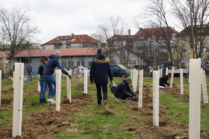 02.04.2022 – Auf einer Brachfläche an der Antonienbrücke im Leipziger Stadtteil Plagwitz haben wir 140 Vogelkirschen und 300 kleine Eichen gepflanzt sowie Eicheln und Kastanien gesteckt. Die Aktion wurde vom Amt für Stadtgrün und Gewässer der Stadt Leipzig durchgeführt, welche sich auch um die Fläche kümmert und dafür sorgt, dass die Bäume in trockenen Zeiten gegossen werden. Wir haben mit zahlreichen Helfern unterstützt.