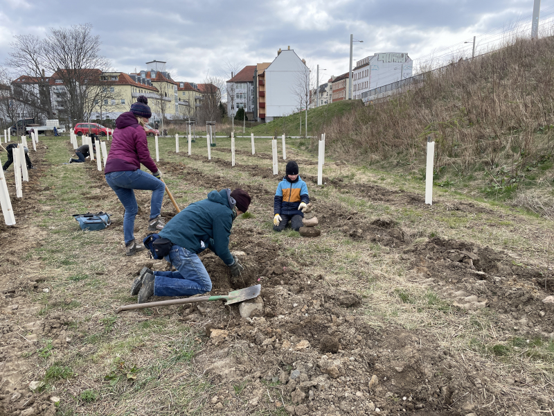 02.04.2022 – Auf einer Brachfläche an der Antonienbrücke im Leipziger Stadtteil Plagwitz haben wir 140 Vogelkirschen und 300 kleine Eichen gepflanzt sowie Eicheln und Kastanien gesteckt. Die Aktion wurde vom Amt für Stadtgrün und Gewässer der Stadt Leipzig durchgeführt, welche sich auch um die Fläche kümmert und dafür sorgt, dass die Bäume in trockenen Zeiten gegossen werden. Wir haben mit zahlreichen Helfern unterstützt.