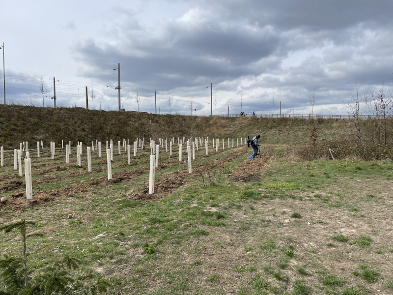02.04.2022 – Auf einer Brachfläche an der Antonienbrücke im Leipziger Stadtteil Plagwitz haben wir 140 Vogelkirschen und 300 kleine Eichen gepflanzt sowie Eicheln und Kastanien gesteckt. Die Aktion wurde vom Amt für Stadtgrün und Gewässer der Stadt Leipzig durchgeführt, welche sich auch um die Fläche kümmert und dafür sorgt, dass die Bäume in trockenen Zeiten gegossen werden. Wir haben mit zahlreichen Helfern unterstützt.