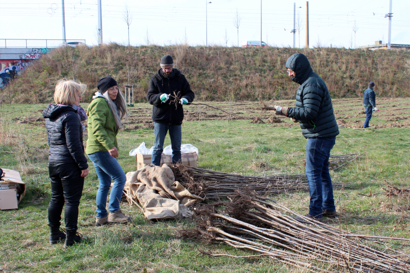 02.04.2022 – Auf einer Brachfläche an der Antonienbrücke im Leipziger Stadtteil Plagwitz haben wir 140 Vogelkirschen und 300 kleine Eichen gepflanzt sowie Eicheln und Kastanien gesteckt. Die Aktion wurde vom Amt für Stadtgrün und Gewässer der Stadt Leipzig durchgeführt, welche sich auch um die Fläche kümmert und dafür sorgt, dass die Bäume in trockenen Zeiten gegossen werden. Wir haben mit zahlreichen Helfern unterstützt.