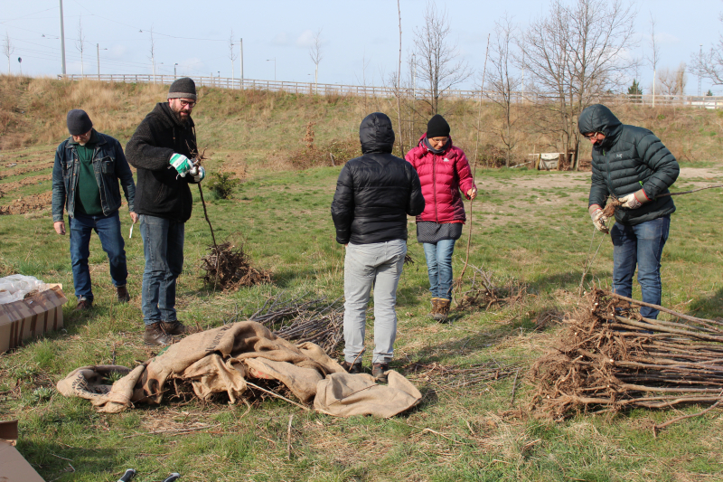 02.04.2022 – Auf einer Brachfläche an der Antonienbrücke im Leipziger Stadtteil Plagwitz haben wir 140 Vogelkirschen und 300 kleine Eichen gepflanzt sowie Eicheln und Kastanien gesteckt. Die Aktion wurde vom Amt für Stadtgrün und Gewässer der Stadt Leipzig durchgeführt, welche sich auch um die Fläche kümmert und dafür sorgt, dass die Bäume in trockenen Zeiten gegossen werden. Wir haben mit zahlreichen Helfern unterstützt.