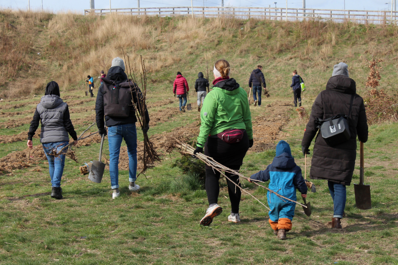 02.04.2022 – Auf einer Brachfläche an der Antonienbrücke im Leipziger Stadtteil Plagwitz haben wir 140 Vogelkirschen und 300 kleine Eichen gepflanzt sowie Eicheln und Kastanien gesteckt. Die Aktion wurde vom Amt für Stadtgrün und Gewässer der Stadt Leipzig durchgeführt, welche sich auch um die Fläche kümmert und dafür sorgt, dass die Bäume in trockenen Zeiten gegossen werden. Wir haben mit zahlreichen Helfern unterstützt.